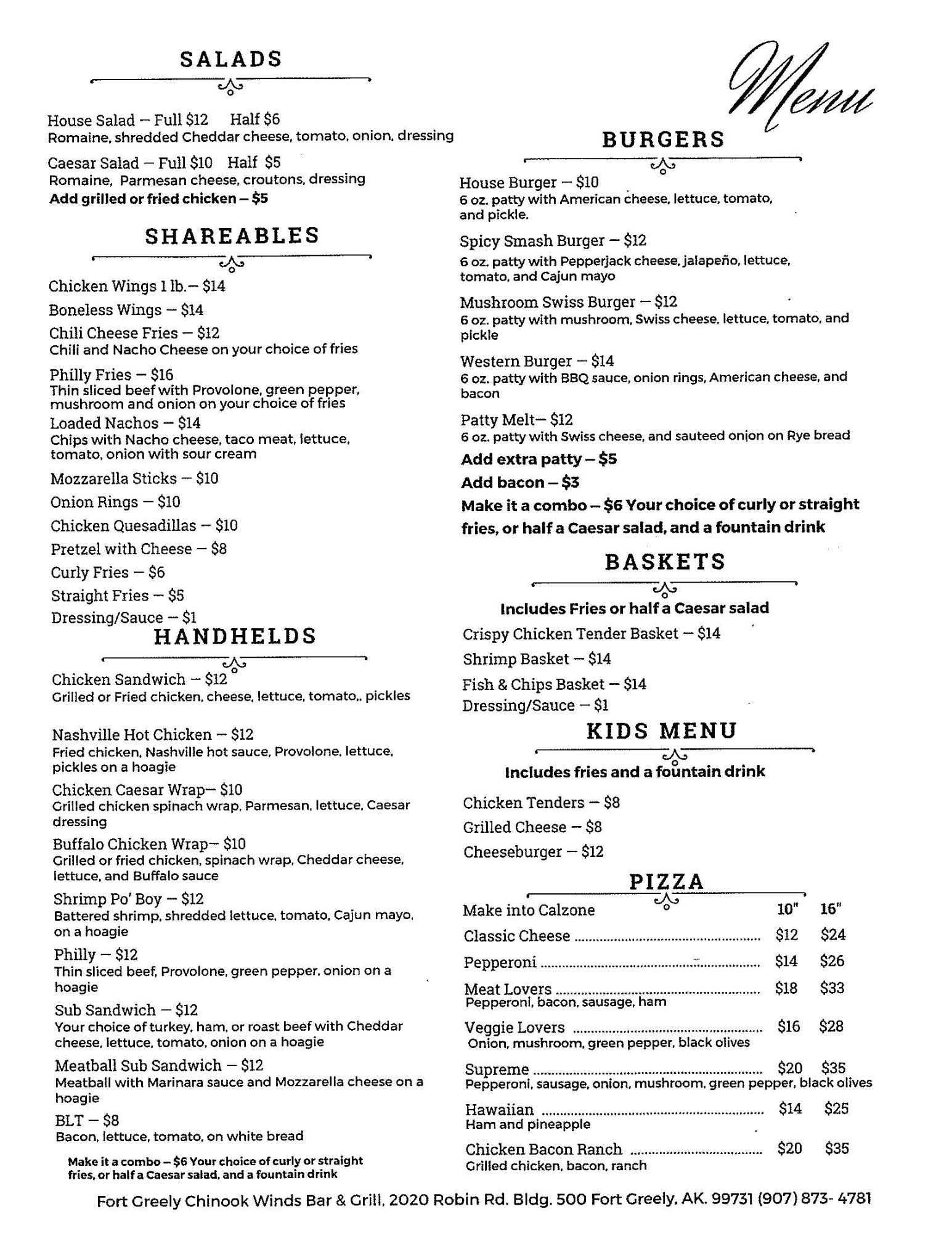 - Chinook Winds Menu