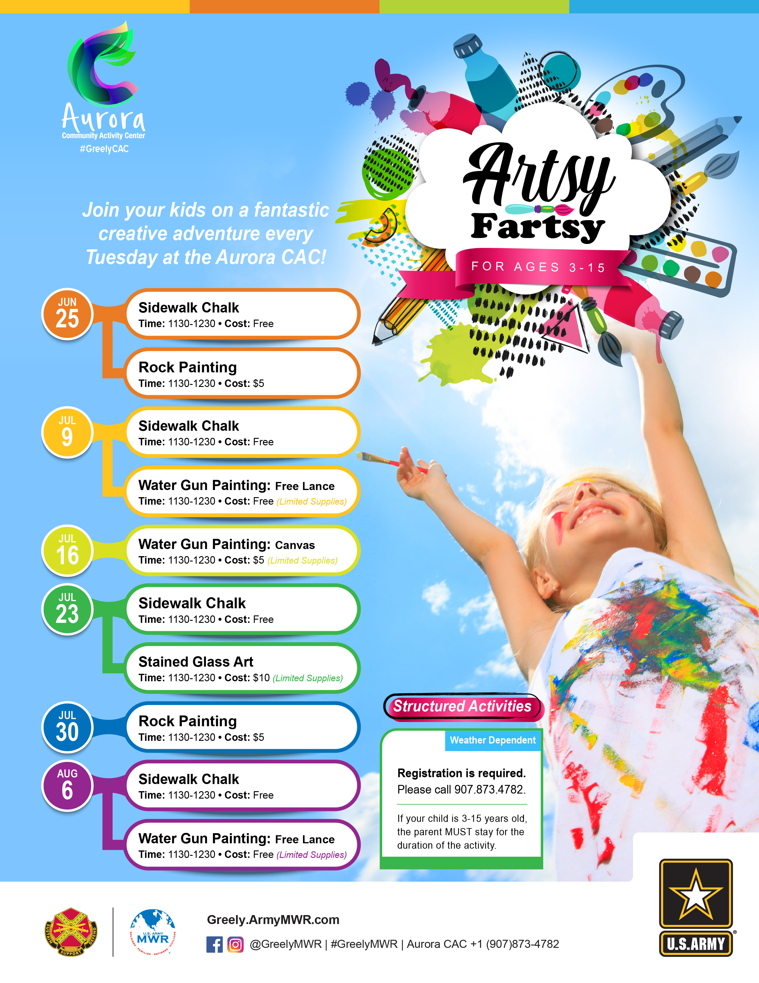 Join your kids on a fantastic creative adventure all summer long! Register your child in one or all of our Artsy Fartsy activities and get them started on their artistic journey.