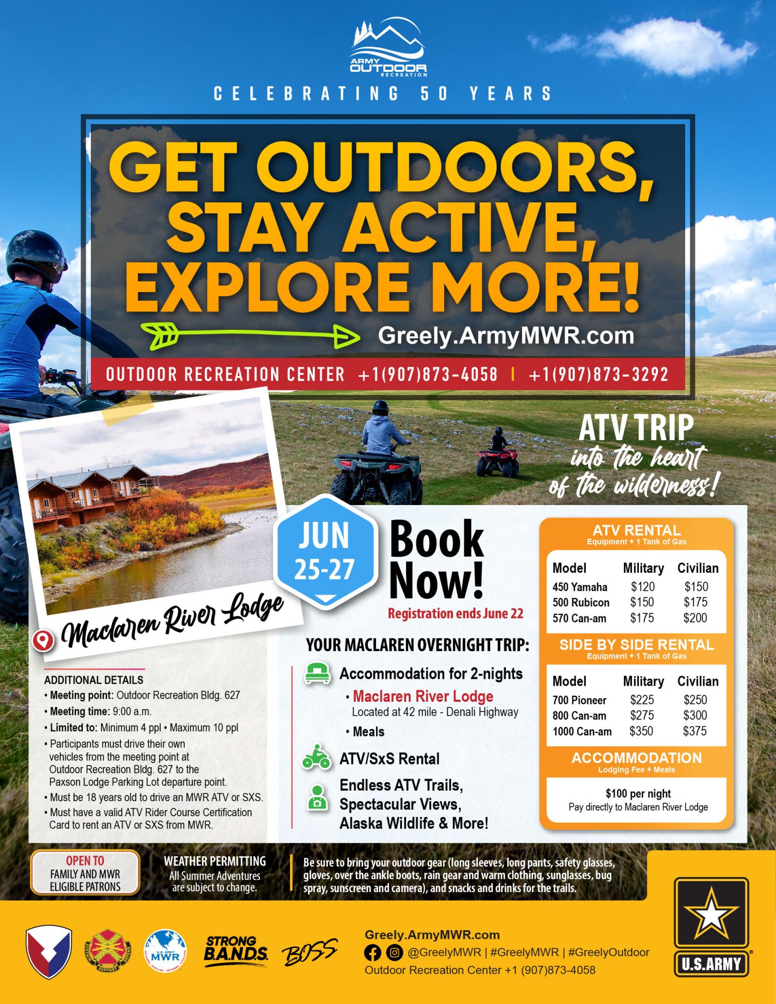 - Participants must have a valid ATV Rider Course Certification Card to rent an ATV/Side by Side from MWR.