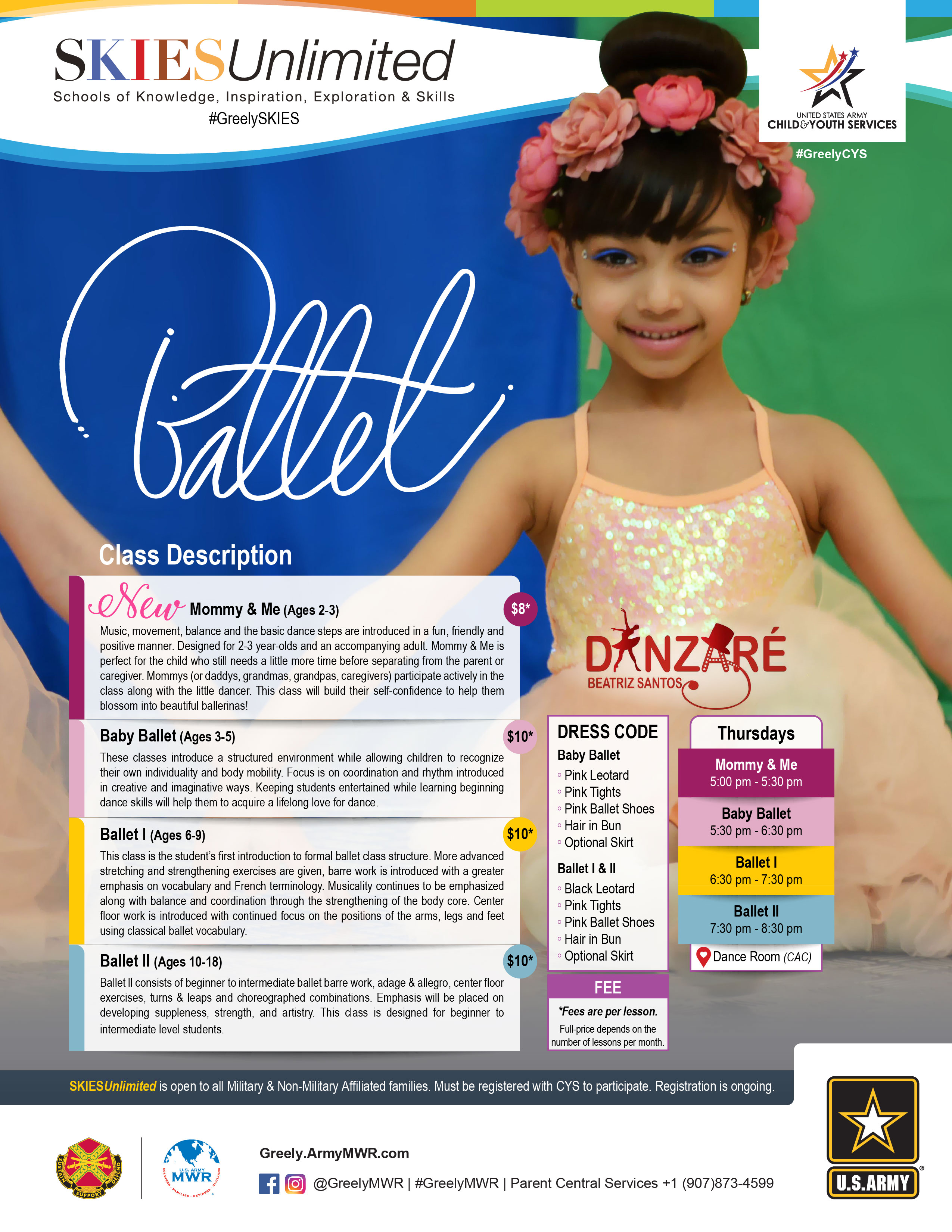 | Baby Ballet | 3-5 | 5:30-6:30 p.m. | $10 |