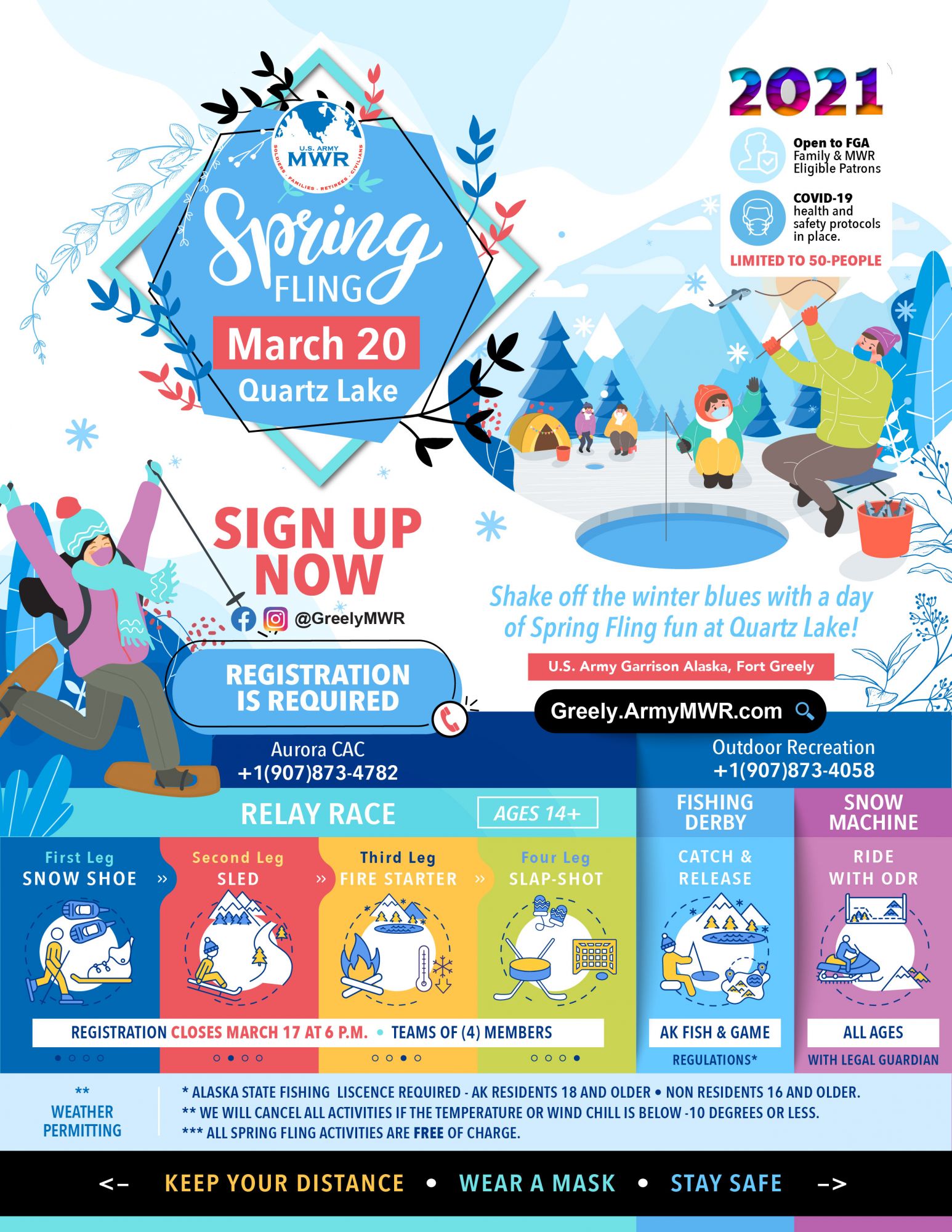 It's that time of the year again! The Annual Spring Fling is back and it promises to be a day full of fun at Quartz Lake. We look forward to seeing you during our Spring Fling! Event is open to all MWR Eligible Patrons.